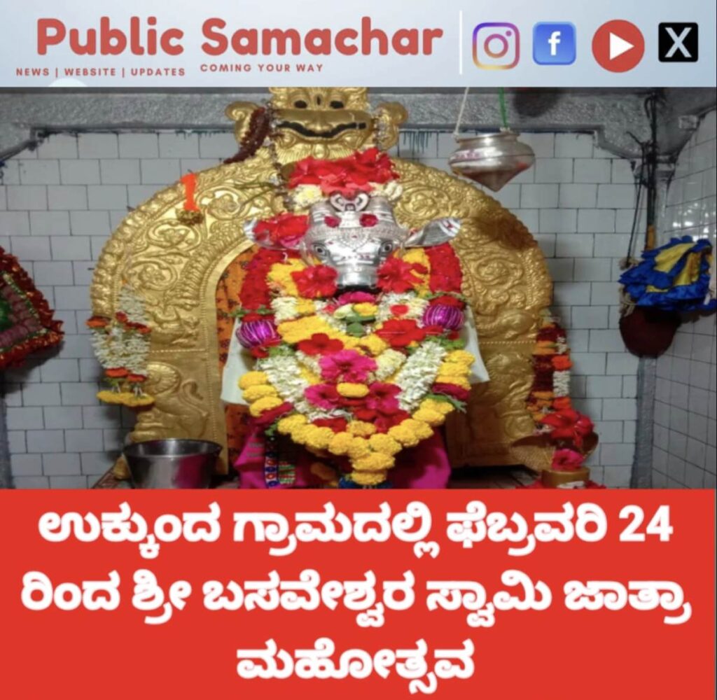 ಉಕ್ಕುಂದ ಗ್ರಾಮದಲ್ಲಿ ಫೆಬ್ರವರಿ 24 ರಿಂದ ಶ್ರೀ ಬಸವೇಶ್ವರ ಸ್ವಾಮಿ ಜಾತ್ರಾ ಮಹೋತ್ಸವ