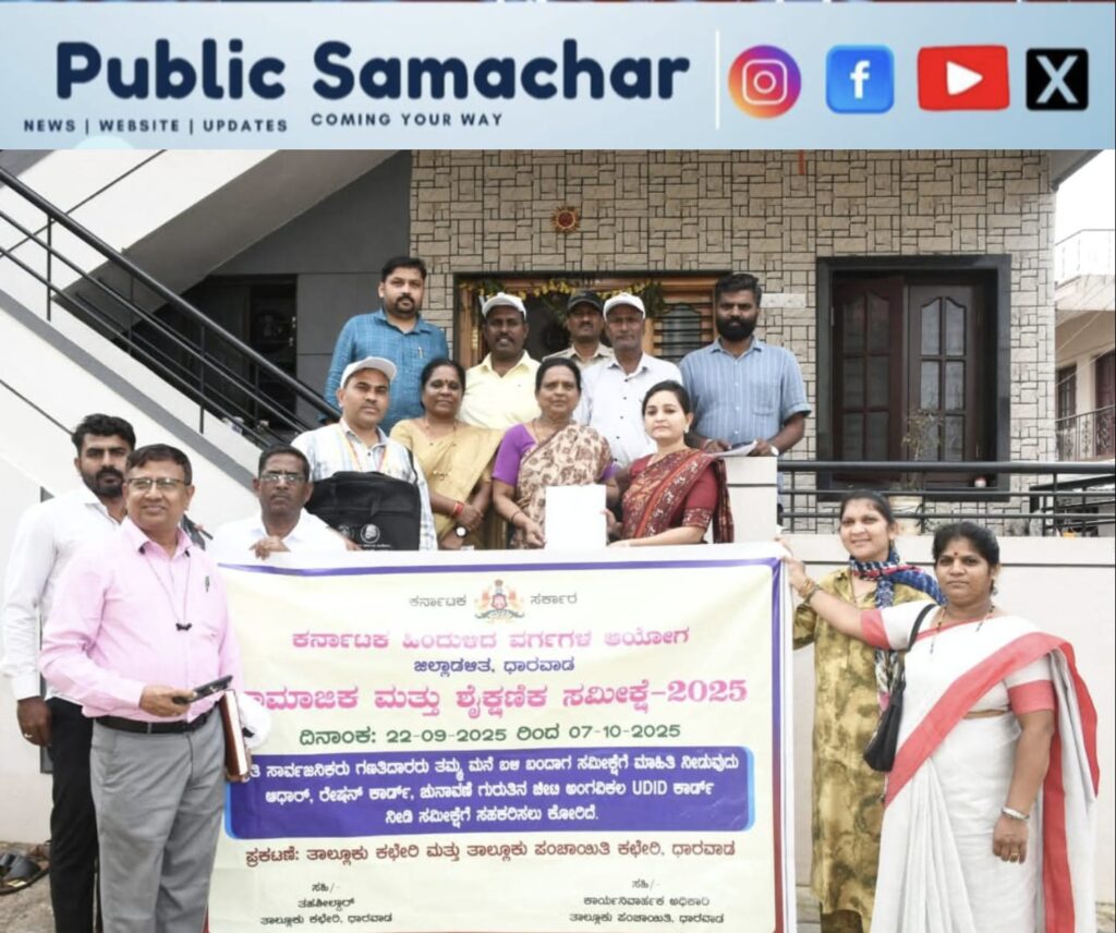ಧಾರವಾಡ: ಸೆ. 22 – ಕರ್ನಾಟಕ ರಾಜ್ಯ ಹಿಂದುಳಿದ ವರ್ಗಗಳ ಆಯೋಗವು ರಾಜ್ಯಾದ್ಯಂತ ಆರಂಭಿಸಿರುವ ಸಾಮಾಜಿಕ ಮತ್ತು ಶೈಕ್ಷಣಿಕ ಸಮೀಕ್ಷೆಗೆ ಧಾರವಾಡ ಜಿಲ್ಲೆಯಲ್ಲಿ ಅಧಿಕೃತವಾಗಿ ಚಾಲನೆ ನೀಡಲಾಗಿದೆ. ಜಿಲ್ಲಾಧಿಕಾರಿ ದಿವ್ಯ ಪ್ರಭು ಅವರು ಸ್ವತಃ ನಗರದ ವಿವಿಧ ಪ್ರದೇಶಗಳಿಗೆ ಭೇಟಿ ನೀಡಿ ಸಮೀಕ್ಷಾ ಕಾರ್ಯವನ್ನು ಪರಿಶೀಲಿಸಿದರು.