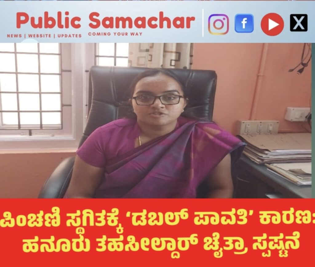 ಹನೂರು: ತಾಲ್ಲೂಕಿನ ವಿಶೇಷ ಚೇತನ ಮಹಿಳೆಯೊಬ್ಬರಿಗೆ ಪಿಂಚಣಿ ಆದೇಶ ಪ್ರತಿ ನೀಡದೆ ಕಳೆದ ಎರಡು ವರ್ಷಗಳಿಂದ ಅಲೆದಾಡಿಸಲಾಗುತ್ತಿದೆ ಎಂಬ ಆರೋಪಕ್ಕೆ ಸಂಬಂಧಿಸಿದಂತೆ ಹನೂರು ತಹಸೀಲ್ದಾರ್ ಚೈತ್ರಾ ಅವರು ಅಧಿಕೃತ ಸ್ಪಷ್ಟನೆ ನೀಡಿದ್ದಾರೆ. ತಾಂತ್ರಿಕ ಕಾರಣಗಳಿಂದಾಗಿ ಪಿಂಚಣಿ ಸ್ಥಗಿತಗೊಂಡಿದೆಯೇ ಹೊರತು ಉದ್ದೇಶಪೂರ್ವಕ ವಿಳಂಬವಾಗಿಲ್ಲ ಎಂದು ಅವರು ಪ್ರಕಟಣೆಯಲ್ಲಿ ತಿಳಿಸಿದ್ದಾರೆ.