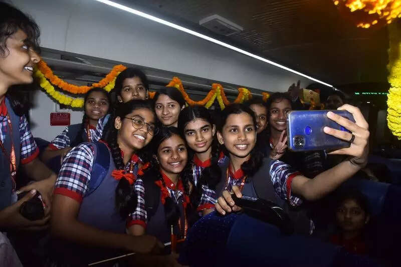 Hubballi: The third Vande Bharat Express train was welcomed with much fanfare at Hubballi station on Sunday evening. Many schoolchildren, train enthusiasts, and BJP workers, led by Union minister Pralhad Joshi, offered a grand welcome to the train. Currently, the Dharwad-Bengaluru-Dharwad and Hubballi-Pune-Hubballi Vande Bharat trains are running through Hubballi station. For the section of Hubballi-Bengaluru, this is the second Vande Bharat train, and will go through districts like Haveri, Davanagere, Tumakuru.Addressing the occasion, Joshi said that Vande Bharat trains are a symbol of the country’s development and these trains offer long journeys in the shortest time. “The Vande Bharat train, including its coaches and engine, is domestically manufactured. The production of these trains began in 2018, and their number has now surpassed 150, with 11 trains operating in Karnataka. Previously, train coaches and engines were imported from abroad,” he noted.“Over the past 11 years, there have been revolutionary changes in the railway sector, with significant expansion of infrastructure. Currently, 30km of tracks are being laid daily. Until 2014, only about 45% of railway routes were electrified, but in the last 11 years, an additional 55% has been completed. In the state, 99% of routes have been electrified. There have been significant changes in the speed of goods train operations. Presently, the cost of freight transport in the country is around 12%, and by enhancing infrastructure such as loading, unloading, and building goods corridors, the cost is being reduced to 8%,” he asserted.If the wildlife division grants permission for the Hubballi-Ankola railway project, it will open a gateway for development in the region. Approval has already been received for the detailed plan. Private entities have come forward to develop two ports along the coast as part of this project. Significant efforts are ongoing to initiate this project. “Land acquisition processes are hindering railway infrastructure and route planning. If these processes are expedited, significant changes can occur in the railway sector. Resolving land acquisition between Davanagere and Chitradurga and constructing the route would allow travel between Hubballi and Bengaluru in four-and-a-half hours,” he mentioned.Sources in SWR said that the train inaugurated by Prime Minister Narendra Modi in Bengaluru was given a grand welcome at many stations. “Responding to requests by the public at large, we stopped it at even halt stations like Heggere Halt near Tumakuru. Though it was not scheduled, it was stopped in Arsikere too. People offered puja and raised slogans in favour of the Railways and the PM,” they added.