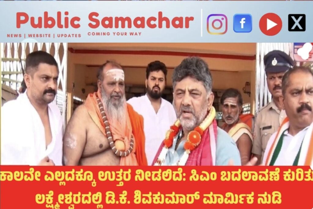 ಲಕ್ಷ್ಮೇಶ್ವರ (ಗದಗ): “ನಾನು ಕುಳಿತಿರುವ ಈ ಜಾಗದಲ್ಲಿ ವಿಶೇಷ ಶಕ್ತಿಯಿದೆ. ಸಮಯ ಬರಲಿ, ಕಾಲವೇ ಎಲ್ಲದಕ್ಕೂ ಉತ್ತರ ನೀಡುತ್ತದೆ” ಎಂದು ಹೇಳುವ ಮೂಲಕ ರಾಜ್ಯದಲ್ಲಿ ಮುಖ್ಯಮಂತ್ರಿ ಬದಲಾವಣೆ ಕುರಿತಾದ ಚರ್ಚೆಗಳಿಗೆ ಉಪಮುಖ್ಯಮಂತ್ರಿ ಡಿ.ಕೆ. ಶಿವಕುಮಾರ್ ಅವರು ಮಾರ್ಮಿಕವಾಗಿ ಪ್ರತಿಕ್ರಿಯಿಸಿದ್ದಾರೆ.