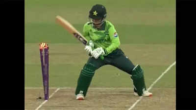 NEW DELHI: Pakistan batter Nashra Sandhu became just the second player in Women’s World Cup history to be dismissed hit wicket, in a bizarre turn of events during their opening match against Bangladesh on Thursday. The first instance occurred 52 years ago when Lynette Smith, playing for International XI Women, fell victim to the unusual mode of dismissal.Go Beyond The Boundary with our YouTube channel. SUBSCRIBE NOW!Sandhu managed just 1 run before her unusual exit off the bowling of Shorna Akter in the 35th over, with video clips of the incident quickly going viral across social media.