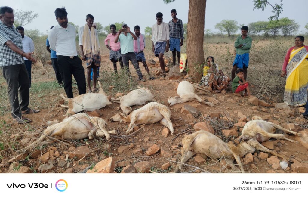 ಹನೂರು: ಕುರಿ ಮೇಯಿಸಿ ಜೀವನ ಸಾಗಿಸುತ್ತಿದ್ದ ಬಡ ರೈತನೊಬ್ಬನ ಹೊಟ್ಟೆಯ ಮೇಲೆ ಕಿಡಿಗೇಡಿಗಳು ಹೊಡೆದಿದ್ದಾರೆ. ಕುರಿಗಳು ಕುಡಿಯುವ ನೀರಿಗೆ ಅಪರಿಚಿತರು ಯೂರಿಯಾ ಮಿಶ್ರಣ ಮಾಡಿದ ಪರಿಣಾಮ, ನೀರು ಕುಡಿದ ಏಳು ಕುರಿಗಳು ಸ್ಥಳದಲ್ಲೇ ಸಾವನ್ನಪ್ಪಿರುವ ದಾರುಣ ಘಟನೆ ಹನೂರು ತಾಲ್ಲೂಕಿನ ಡಿ. ವಿಲೇಜ್ನ ಬೂದಿಕೆರೆ ಬಳಿ ಸಂಭವಿಸಿದೆ. 75 ಅರಬಗೆರೆ ಗ್ರಾಮದ ನಿವಾಸಿ ಮುತ್ತೇಗೌಡ ಬಿನ್ ಕರಗೆಗೌಡ ಎಂಬುವವರಿಗೆ ಸೇರಿದ ಕುರಿಗಳು ಈ ಮಾರಣಹೋಮಕ್ಕೆ ಬಲಿಯಾಗಿವೆ.
