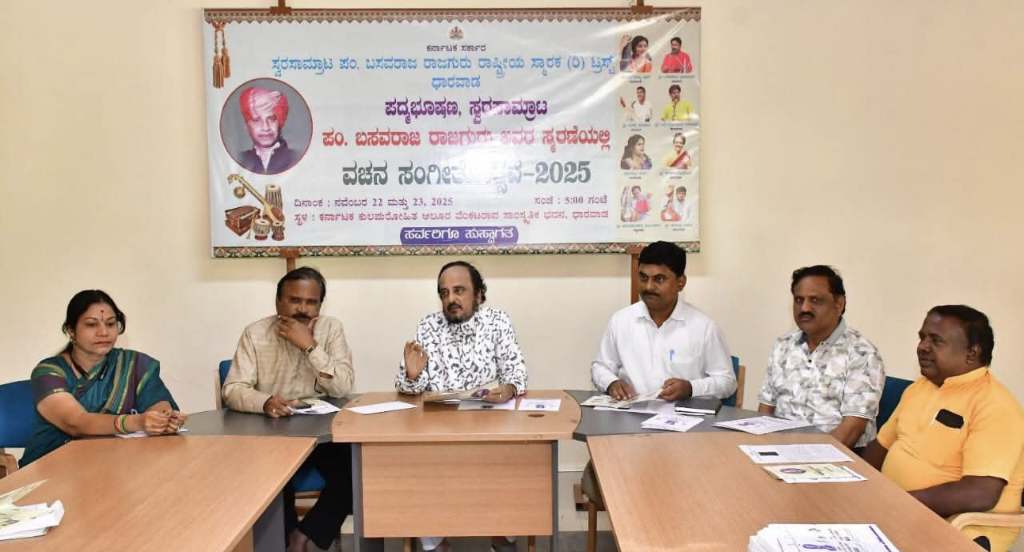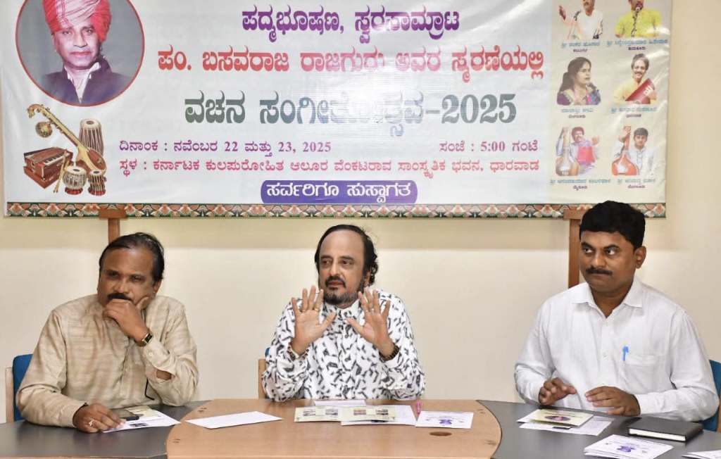 ಧಾರವಾಡ, ನ. 18: ಪದ್ಮಭೂಷಣ ಸ್ವರಸಾಮ್ರಾಟ ಪಂ. ಬಸವರಾಜ ರಾಜಗುರು ಅವರ ಸ್ಮರಣೆಯಲ್ಲಿ, ಸ್ವರಸಾಮ್ರಾಟ ಪಂ. ಬಸವರಾಜ ರಾಜಗುರು ರಾಷ್ಟ್ರೀಯ ಸ್ಮಾರಕ (ರಿ) ಟ್ರಸ್ಟ್ ವತಿಯಿಂದ ವಚನ ಸಂಗೀತೋತ್ಸವ–2025 ಕಾರ್ಯಕ್ರಮವನ್ನು ನವೆಂಬರ್ 22 ಮತ್ತು 23, 2025 ರಂದು ಆಯೋಜಿಸಲಾಗಿದೆ ಎಂದು ಟ್ರಸ್ಟ್ನ ಅಧ್ಯಕ್ಷರಾದ ಪಂ. ಕೈವಲ್ಯಕುಮಾರ ಗುರವ ಅವರು ಪ್ರಕಟಿಸಿದರು.