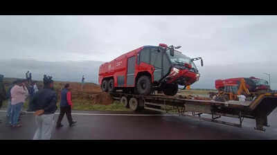 Pic: Aircraft Rescue and Firefighting (ARFF) vehicles from the Rosenbauer Company in Austria have reached Vijayapura Greenfield AirportVijayapura: Two Aircraft Rescue and Firefighting (ARFF) vehicles from the Rosenbauer Company in Austria, have arrived at Vijayapura Greenfield Airport on Monday. Industries minister MB Patil who is also the Vijayapura district minister, said the fire fighting vehicles were procured through global tender and cost Rs 24 crore.The state-of-the-art vehicles are computerised and have the capacity to pump water to a distance of 160 meters to douse the fire. The addition of fire fighters at the airport fulfills another condition putforth by civil aviation department and airport authority of India.Two vehicles were shipped from Austria to Mumbai and from Mumbai they were brought in a trolly truck.The environmental clearance from the environment department, Govt of India, is awaited. MB Patil said he has been pursuing the matter with Union minister for environment, forest and climate change Bhupender Yadav, and expects to get the clearance soon.“Once we get the environmental clearance, the airport will be inaugurated” he said.Karnataka govt has developed the infrastructure at the airport and once it becomes operational, other works to upgrade it into an international airport will follow, MB Patil said.Vijayapura airport has come up on the 727 acres area at Buranapur-Madabhavi villages off Vijayapura city.When Govind Karjol was the public works minister, he evinced interest in speedy work in the construction of airport and now the airport is ready.InfrastructureThe new airport features a passenger terminal building, aircraft apron, singular 1.9 km runway and car parking. Basically it was designed to operate small ATR-72-600 type aircraft at a cost of Rs 95 crore and will be able to handle about 200 peak hour passengers. The state govt has upgraded the airport to facilitate flying of Airbus-320 by releasing additional Rs 127.9 crore. The civil works have been taken up by the PWD and Karnatak Urban Infrasgtructure Development Finance Corporation (KUIDFC) has funded the civil works. KSIIDC is the nodal agency for supervising the works. M/s Rites of Gurgaon have done the designing of the airport.