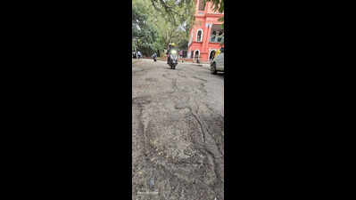 Bengaluru: Morning joggers and marathon participants who sweat it out while running in and around Cubbon Park in the central part of the city have one question: Why are the roads in a state of despair despite close proximity to the Karnataka high court?In fact, the nearly 100-metre stretch near court gate number 5 and the Bar Council office lies in complete despair, riddled with deep craters and broken patches. The stretch is also used by hundreds of advocates and litigants every day. Ironically, the adjoining Vidhana Soudha has good road. After last Sunday’s marathon, a lot of runners posted photographs of broken stretches on social media platforms and asked: How can the road to the seat of justice itself be dotted by potholes and craters? The road houses key institutions such as the Karnataka high court, Karnataka bar council, Karnataka government insurance department, and Bengaluru press club. Some netizens asked why the lawyer fraternity and media personnel had turned a blind eye to the problem, which also affects thousands of tourists who visit Cubbon Park daily. Advocates who spoke to TOI admitted that they too face the same hardships as the public but pointed to systemic challenges in raising the issue through the courts.Srinivas V, a senior advocate in the high court, said: “It is very tough to bring up this issue through PIL. There are so many cases already pending in front of the high court, and it takes a lot of time for PIL hearings. While we all are equally victims of the bad roads, I personally feel filling up a pothole with asphalt and making it a patch on the road just makes it worse as the road becomes uneven. The govt allocated around Rs 1,100 crore just for potholes, and that is a huge amount with which all the damaged roads can be fully asphalted easily. The accountability and coordination with agencies is the main problem in our city.”Three young advocates — Manu D Gowda, Vishwas N R and Bhagyashree — acknowledged the delays but stressed the importance of judicial intervention. “We all travel to courts from about 20 to 30 plus kilometres…and we usually take a two-wheeler as it is convenient to travel between courts. Two-wheelers are the most affected among all those who commute on the road, especially during rains,” they said. They added PILs, despite delays, remain the best way to bring civic issues to judicial notice.On the other hand, Bengaluru Advocates’ Association said they have raised the road issue with the PWD and have been trying to push for improvements around the high courts and other courts.Association president Vivek Subba Reddy told TOI, “On behalf of the advocates, the association has flagged the road issue, and we are told that the estimation is being prepared for the same. We will encourage people to file PILs, and try to push the matter as judicial intervention plays a very important role. While it takes some time for PIL hearings, the process is simple, and nothing should demotivate people from filing them.“When contacted, Greater Bengaluru Authority officials acknowledged the problem and said they will fix it shortly.