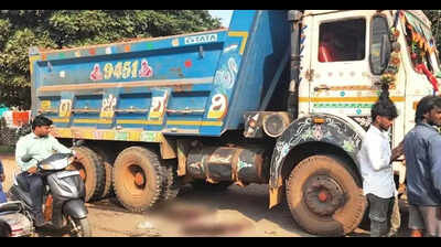 Pic: The truck was seized after the accidentBallari: A woman suffered severe injuries when a truck hit her while she was riding a scooter with her mother near a culvert on Belagal Road, on the outskirts of Ballari. The injured woman, Varalakshmi, a resident of Gautam Nagar, was run over by the truck, resulting in significant injuries to both of her legs. Her mother incurred minor injuries. Upon receiving reports of the accident, police quickly arrived at the scene, confiscated the truck, and detained the driver for interrogation. A case was filed at the Kaul Bazar police station. Following the incident, angry residents blocked the road at the accident site and organised a protest. During the demonstration, there was a heated exchange between the public and the police. Residents voiced their frustration over the authorities’ inability to control trucks carrying unauthorised excess loads into the city, holding both the police and officials from the mines & geology department accountable.