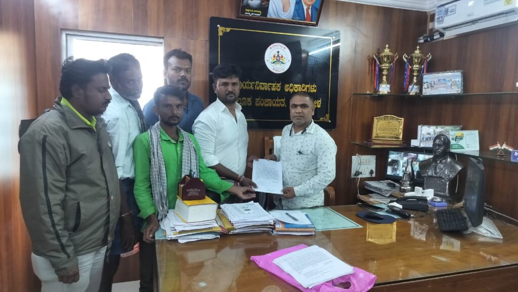 ಪೋಟೋ: ತಾಲ್ಲೂಕಿನ ಮುಳ್ಳಹಳ್ಳಿ ಗ್ರಾಮದ 14 ಕುಟುಂಬದ ನೀರಾಶ್ರೀತರು ತಾ ಪಂ ತೆರಳಿ ತಾ ಪಂ ಇಓ ಜಗದೀಶ ಕಮ್ಮಾರ ಅವರಿಗೆ ಹಾಗೂ ಪೋಲಿಸ್ ಠಾಣೆಗೆ ಹಾಗೂ ಯರಗುಪ್ಪಿ ಗ್ರಾಮ ಪಂಚಾಯತಿ ಯವರಿಗೆ ಪ್ರತಿಭಟನೆ ಮಾಡುವದಾಗಿ ಮನವಿ ಸಲ್ಲಿಸಿದರು.