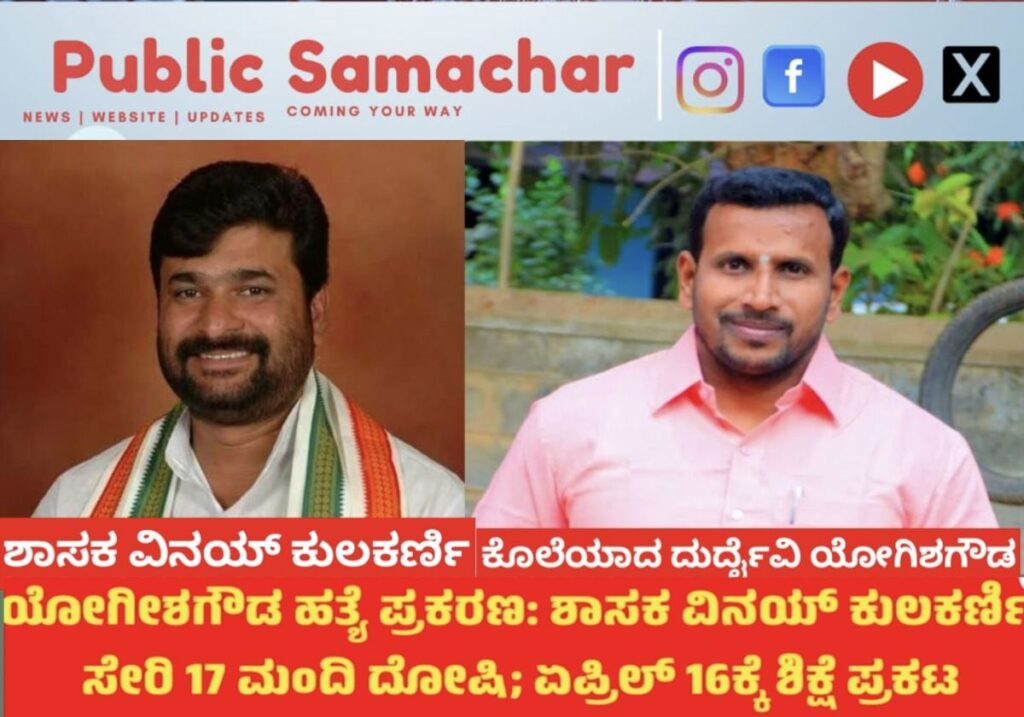 ಬೆಂಗಳೂರು: ರಾಜ್ಯ ರಾಜಕೀಯದಲ್ಲಿ ಸಂಚಲನ ಮೂಡಿಸಿದ್ದ ಧಾರವಾಡದ ಜಿಲ್ಲಾ ಪಂಚಾಯಿತಿ ಮಾಜಿ ಸದಸ್ಯ ಯೋಗೀಶಗೌಡ ಗೌಡರ ಹತ್ಯೆ ಪ್ರಕರಣದ ಸುದೀರ್ಘ ವಿಚಾರಣೆ ನಡೆಸಿದ ಬೆಂಗಳೂರಿನ ಜನಪ್ರತಿನಿಧಿಗಳ ವಿಶೇಷ ನ್ಯಾಯಾಲಯವು ಐತಿಹಾಸಿಕ ತೀರ್ಪು ನೀಡಿದೆ. ಪ್ರಕರಣದ ಪ್ರಮುಖ ಆರೋಪಿಯಾಗಿರುವ ಧಾರವಾಡ ಕ್ಷೇತ್ರದ ಕಾಂಗ್ರೆಸ್ ಶಾಸಕ ವಿನಯ್ ಕುಲಕರ್ಣಿ ಸೇರಿದಂತೆ ಒಟ್ಟು 17 ಮಂದಿಯನ್ನು ನ್ಯಾಯಾಲಯವು ದೋಷಿಗಳೆಂದು ಘೋಷಿಸಿದೆ. ವಿಚಾರಣೆ ನಡೆಸಿದ ನ್ಯಾಯಾಧೀಶರಾದ ಸಂತೋಷ ಗಜಾನನ ಭಟ್ ಅವರು ಬುಧವಾರ ಸಂಜೆ ಈ ತೀರ್ಪು ಪ್ರಕಟಿಸಿದ್ದು, ದೋಷಿಗಳನ್ನು ತಕ್ಷಣವೇ ವಶಕ್ಕೆ ಪಡೆಯುವಂತೆ ಕೇಂದ್ರ ತನಿಖಾ ದಳದ (ಸಿಬಿಐ) ಅಧಿಕಾರಿಗಳಿಗೆ ನಿರ್ದೇಶನ ನೀಡಿದ್ದಾರೆ.